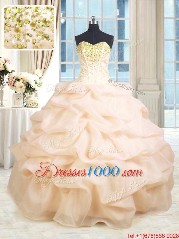 Sweetheart Sleeveless Organza Quinceanera Dresses Beading and Ruffles Lace Up