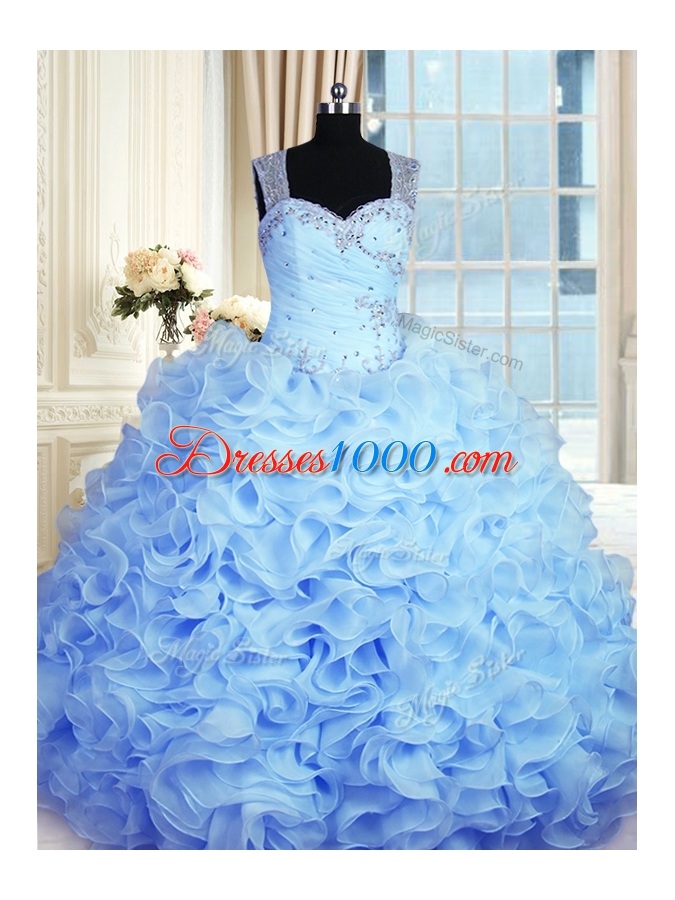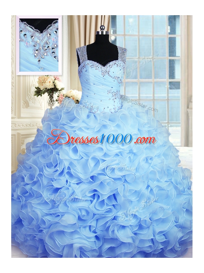 Baby Blue Sleeveless Organza Zipper Quinceanera Gowns for Military Ball and Sweet 16 and Quinceanera