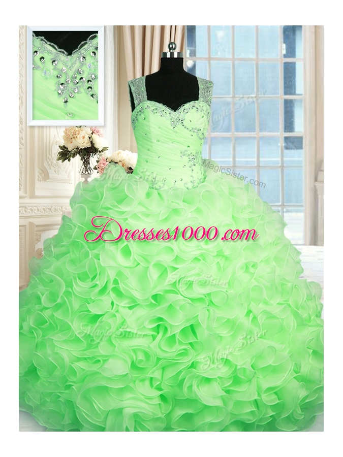 Quinceanera Gowns Military Ball and Sweet 16 and Quinceanera and For with Beading and Ruffles Straps Sleeveless Zipper