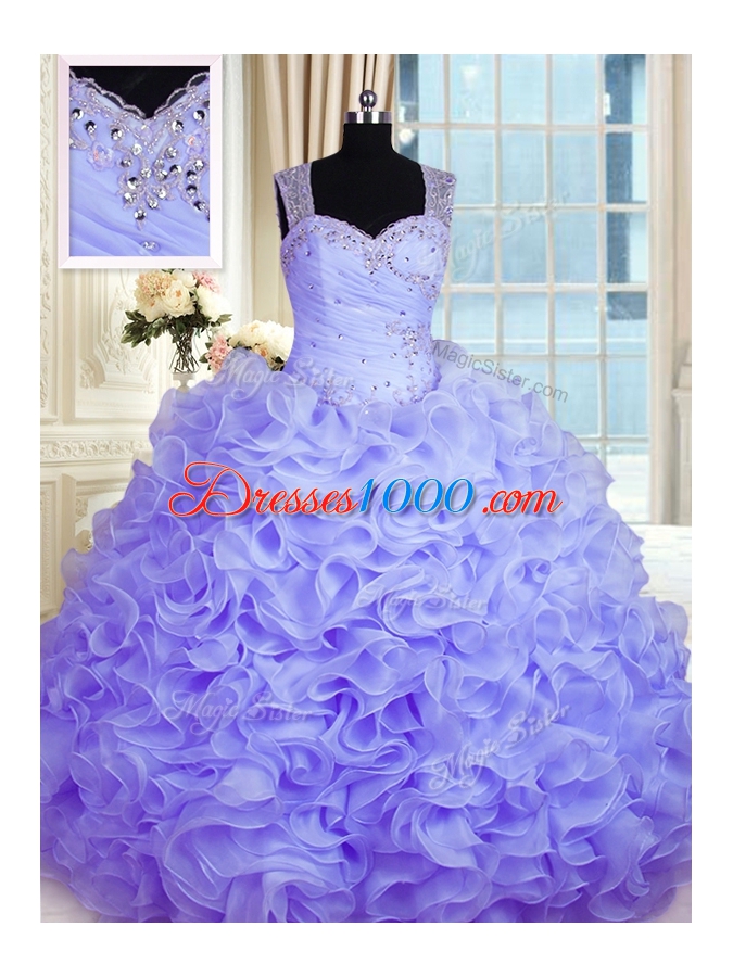 Fantastic Organza Sleeveless Floor Length 15 Quinceanera Dress and Beading and Ruffles