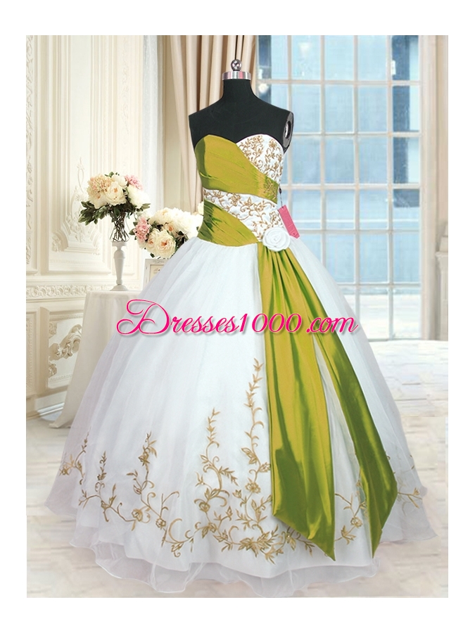 Sweetheart Sleeveless Organza 15th Birthday Dress Embroidery and Sashes|ribbons Lace Up