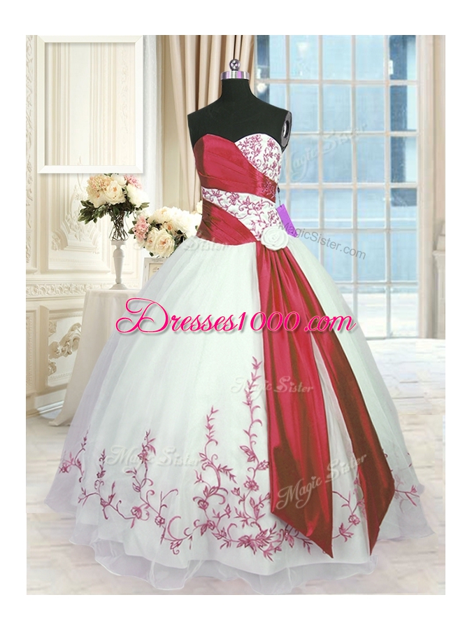 Floor Length Ball Gowns Sleeveless White And Red Sweet 16 Quinceanera Dress Lace Up