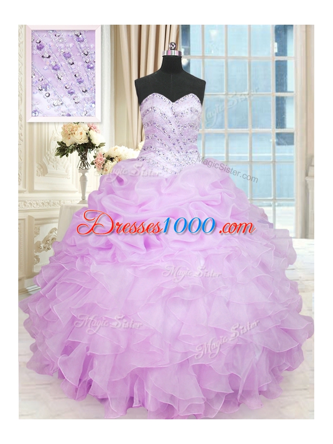 Lilac Sweetheart Lace Up Beading and Ruffles Sweet 16 Quinceanera Dress Sleeveless