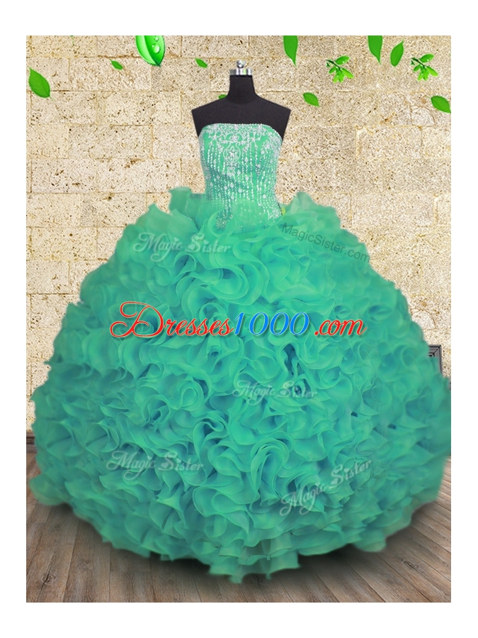 Sleeveless Lace Up Floor Length Beading and Ruffles Quinceanera Gown