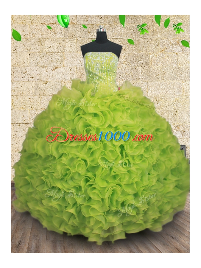 New Arrival Yellow Green Strapless Lace Up Beading and Ruffles 15 Quinceanera Dress Sleeveless