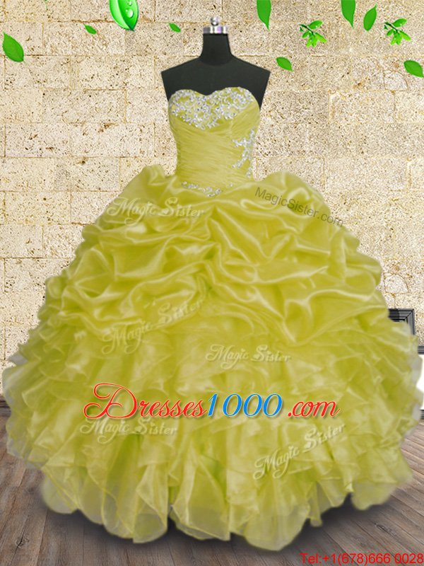 Vintage Sleeveless Organza Floor Length Lace Up Sweet 16 Dress in Green for with Beading and Appliques and Ruffles and Ruching