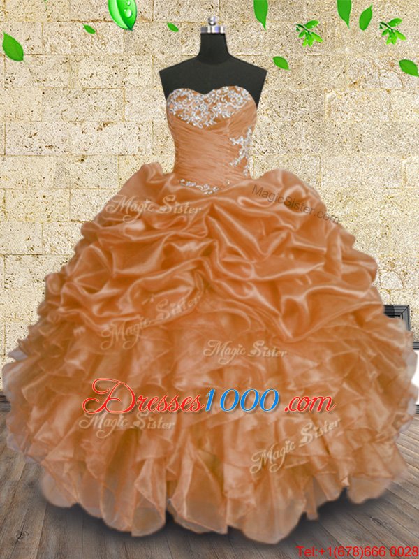 Admirable Sequins Ball Gowns 15 Quinceanera Dress Orange Sweetheart Organza Sleeveless Floor Length Lace Up