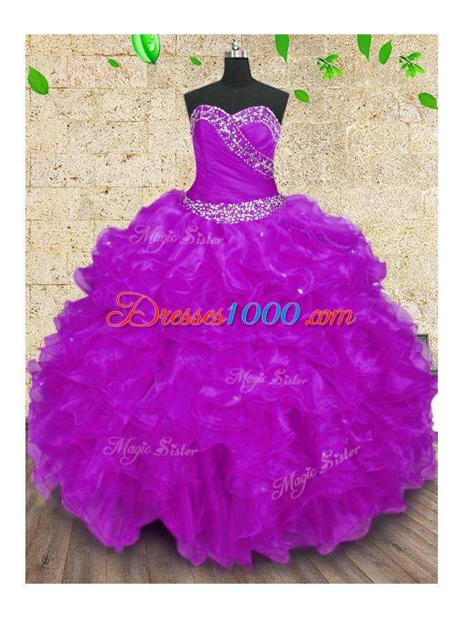 Simple Halter Top Purple Sleeveless Beading and Ruffles and Ruching Floor Length 15th Birthday Dress