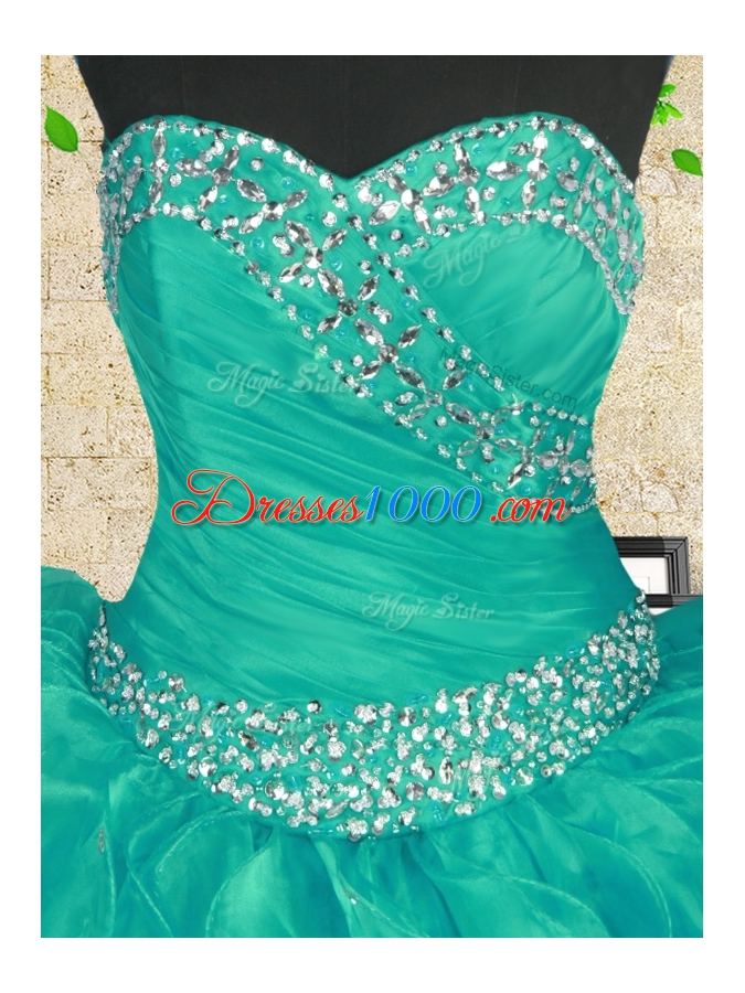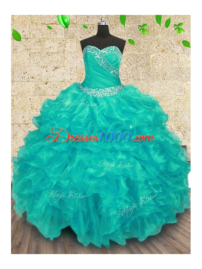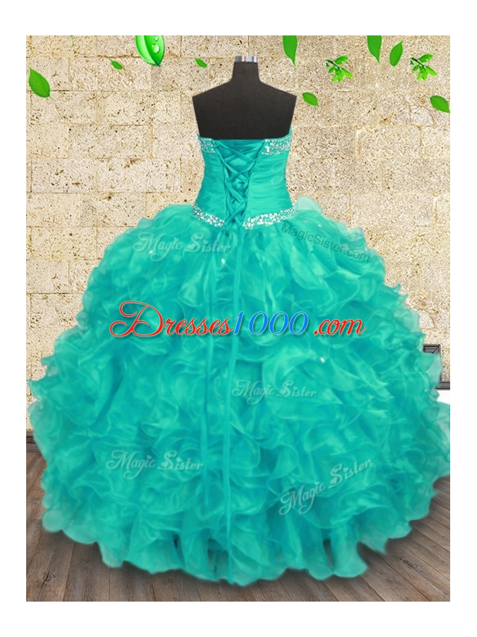 Traditional Turquoise Sweetheart Lace Up Beading Sweet 16 Dresses Sleeveless