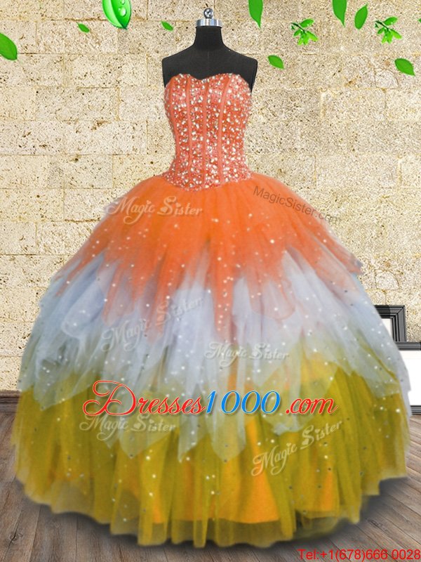 Flirting Sweetheart Sleeveless Tulle Quinceanera Gowns Beading and Ruffles and Sequins Lace Up