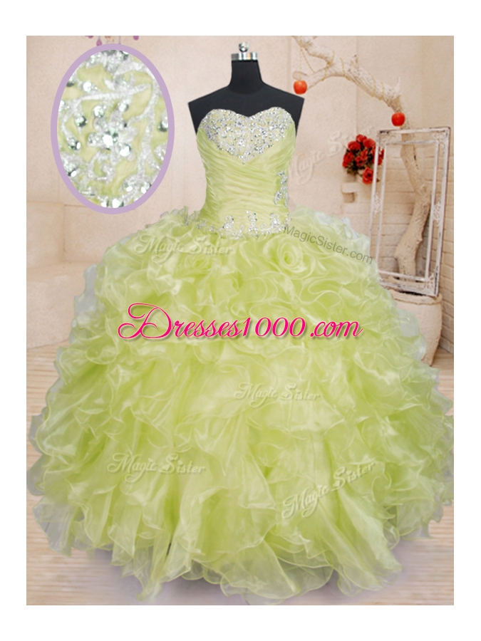 Fabulous Yellow Green Sleeveless Organza Lace Up Vestidos de Quinceanera for Military Ball and Sweet 16 and Quinceanera