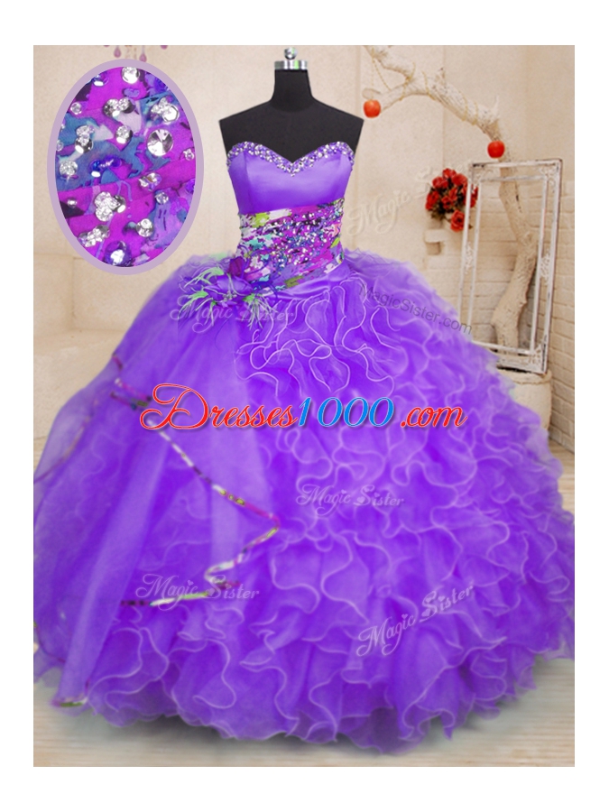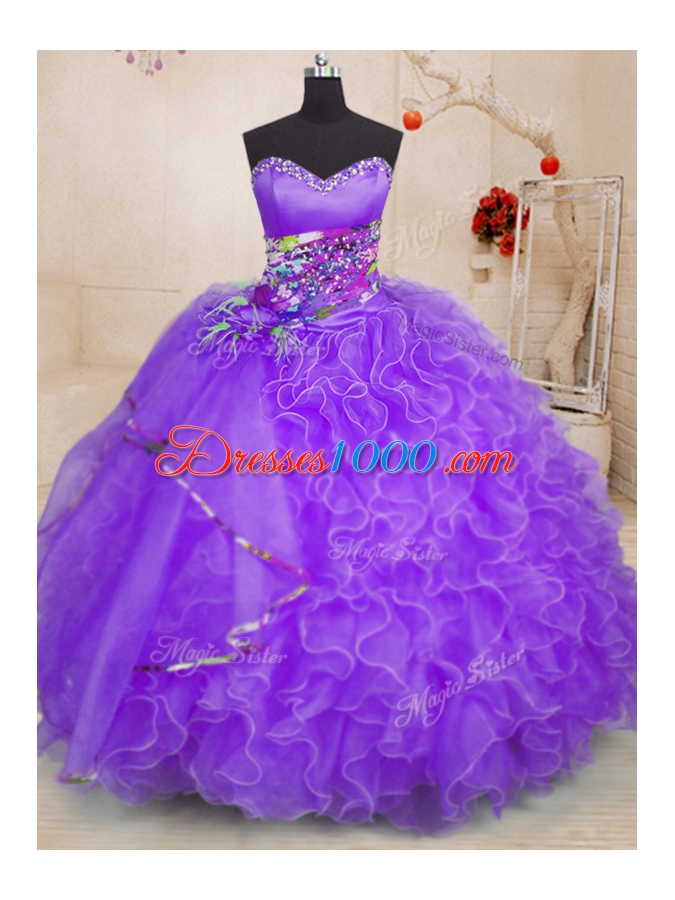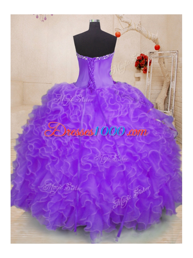 Lavender Sleeveless Beading and Ruffles Floor Length Quinceanera Dresses