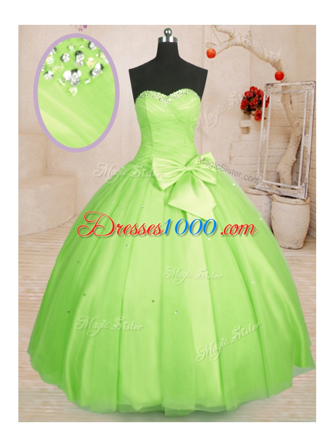 Elegant Yellow Green Lace Up Sweetheart Beading and Bowknot Quinceanera Gowns Tulle Sleeveless