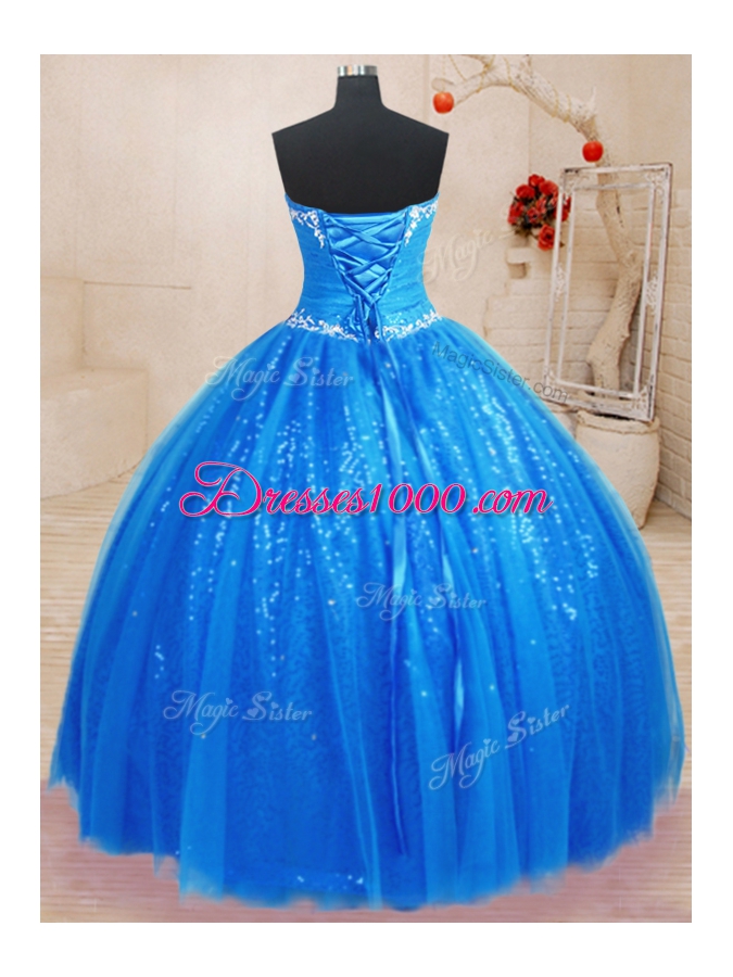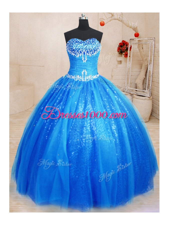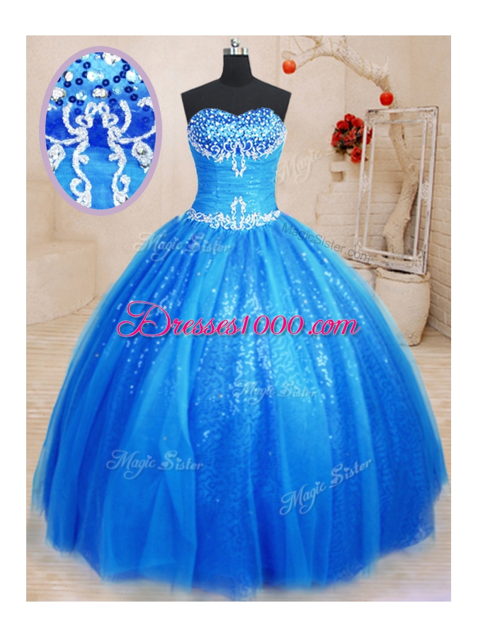 Pretty Royal Blue Sweet 16 Dresses Military Ball and Sweet 16 and Quinceanera and For with Beading and Appliques Sweetheart Sleeveless Lace Up