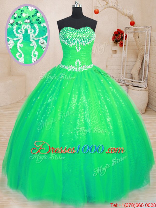 Cheap Sweetheart Sleeveless Tulle and Sequined Quinceanera Dresses Beading Lace Up