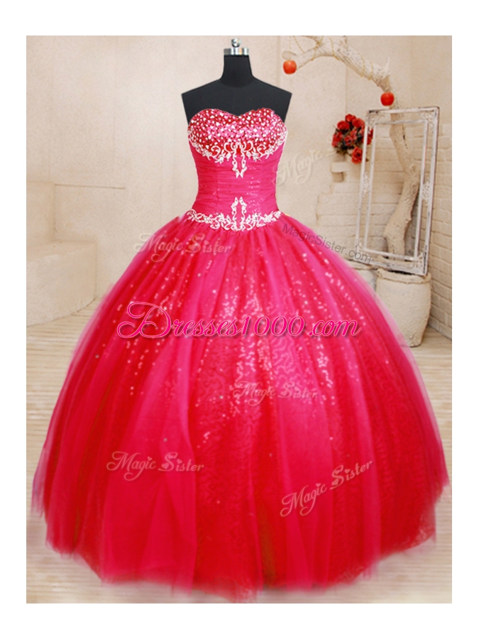 Fine Red Quince Ball Gowns Military Ball and Sweet 16 and Quinceanera and For with Beading Sweetheart Sleeveless Lace Up