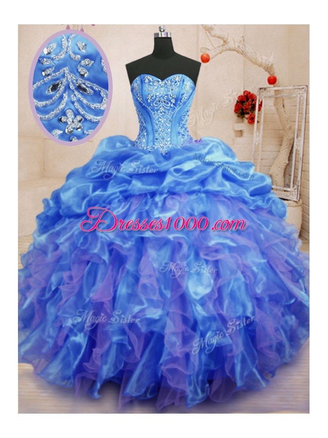 Organza Sleeveless Floor Length 15th Birthday Dress and Beading and Ruffles