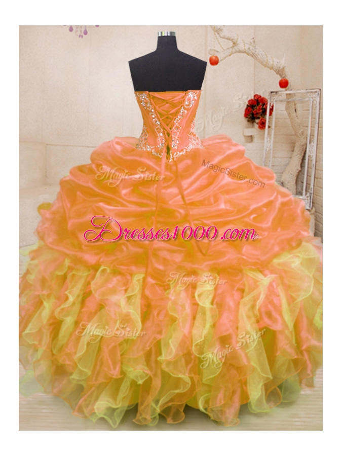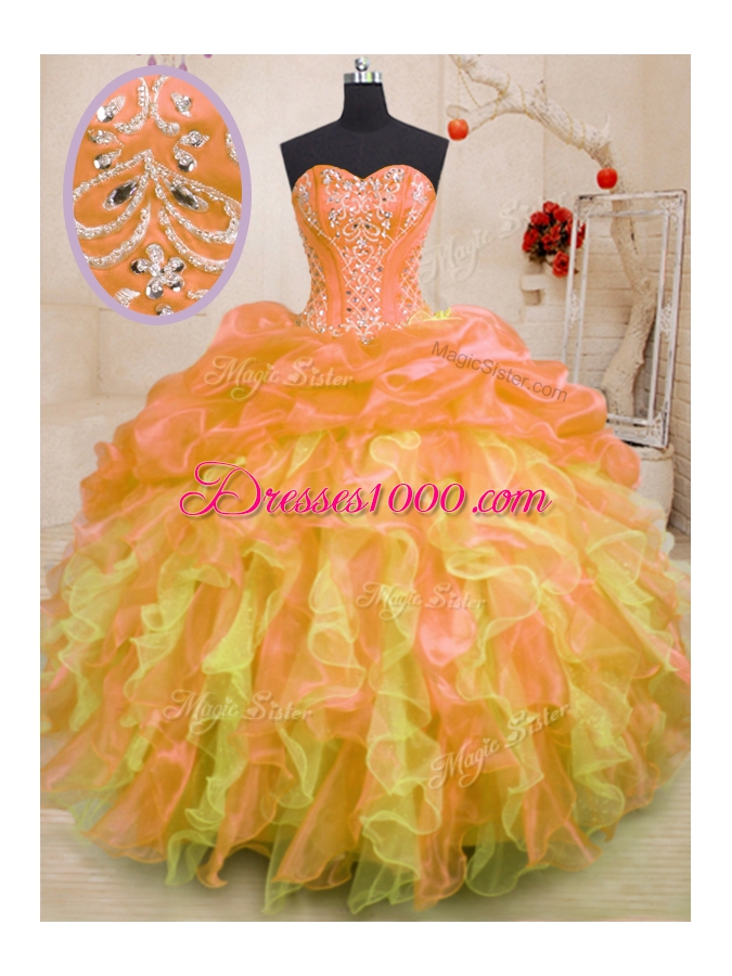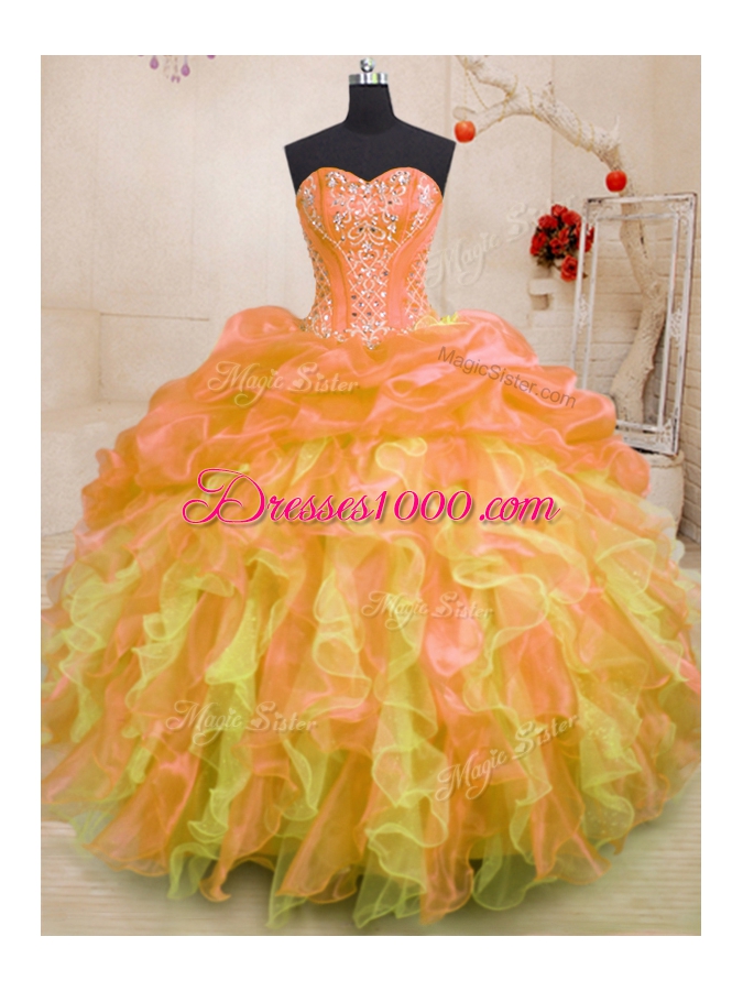 Multi-color Ball Gowns Sweetheart Sleeveless Organza Floor Length Lace Up Beading and Ruffles Vestidos de Quinceanera
