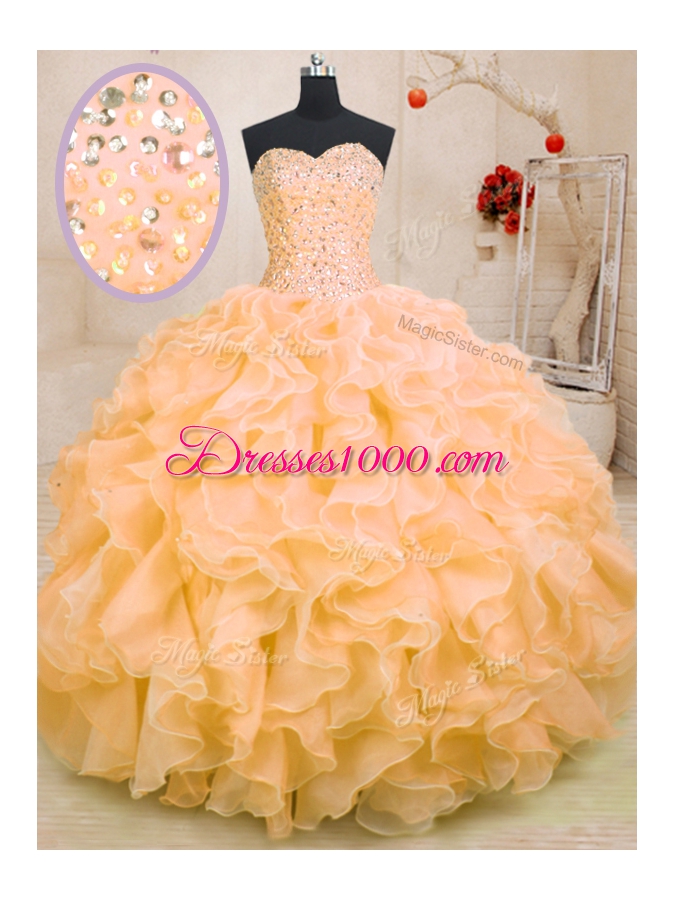 Orange Lace Up Sweetheart Beading and Ruffles Quinceanera Dresses Organza Sleeveless