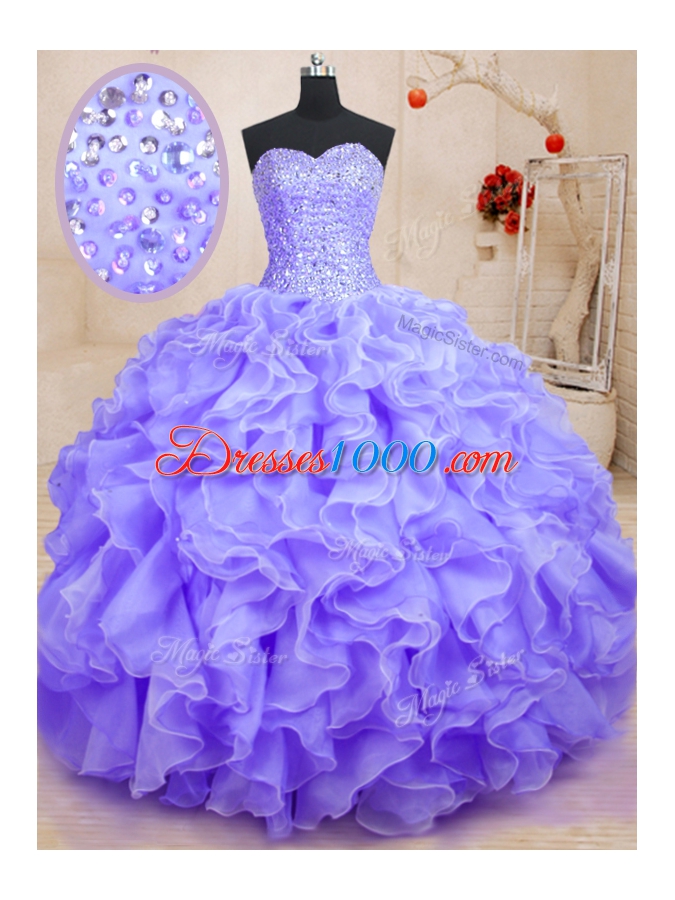 Most Popular Organza Sleeveless Floor Length Quinceanera Dresses and Beading and Ruffles