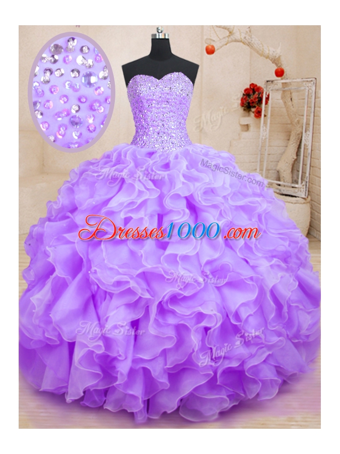 Organza Sweetheart Sleeveless Lace Up Beading and Ruffles Quinceanera Dress in Lavender
