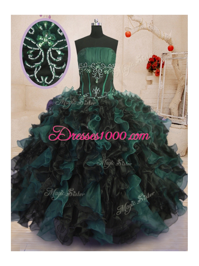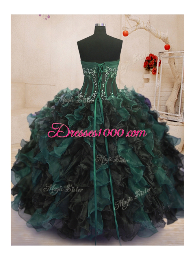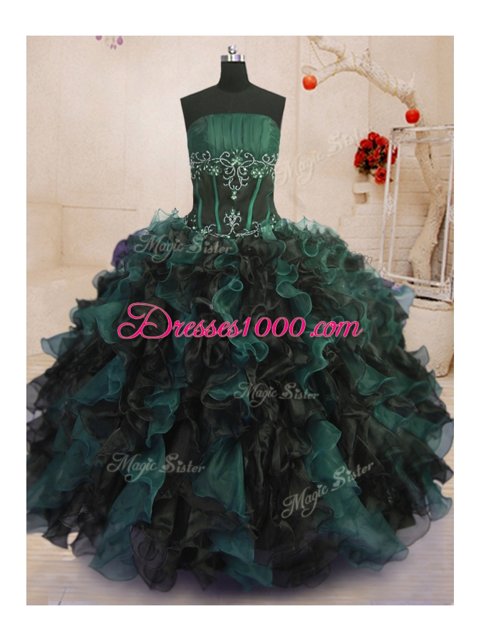 Amazing Ball Gowns Quince Ball Gowns Multi-color Strapless Organza Sleeveless Floor Length Lace Up