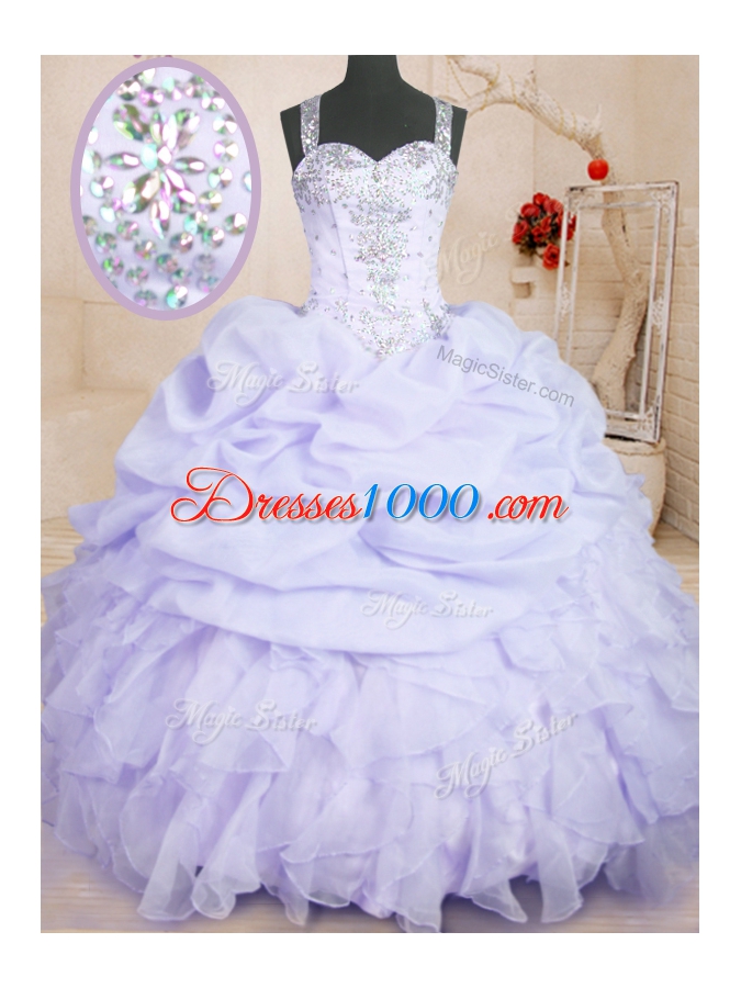 Top Selling Lavender Zipper Straps Beading and Ruffles and Pick Ups Sweet 16 Dress Organza Sleeveless