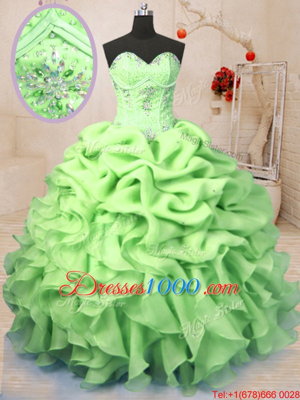 Captivating Yellow Green Organza Lace Up Sweet 16 Dresses Sleeveless Floor Length Beading and Ruffles and Pick Ups