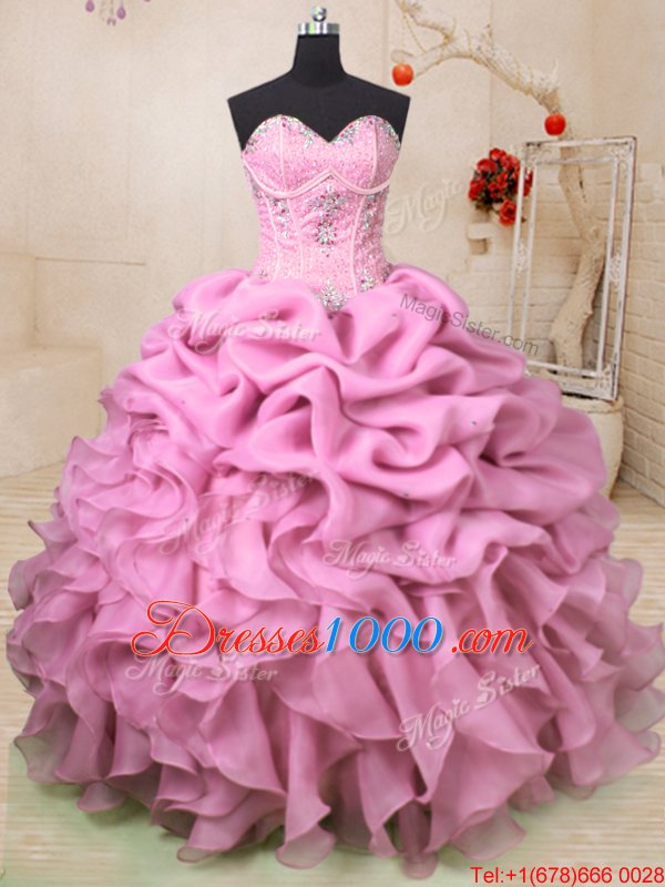 Colorful Baby Pink Sleeveless Beading and Ruffles and Pick Ups Floor Length Ball Gown Prom Dress