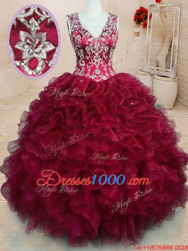 Beauteous Floor Length Ball Gowns Sleeveless Wine Red Ball Gown Prom Dress Zipper