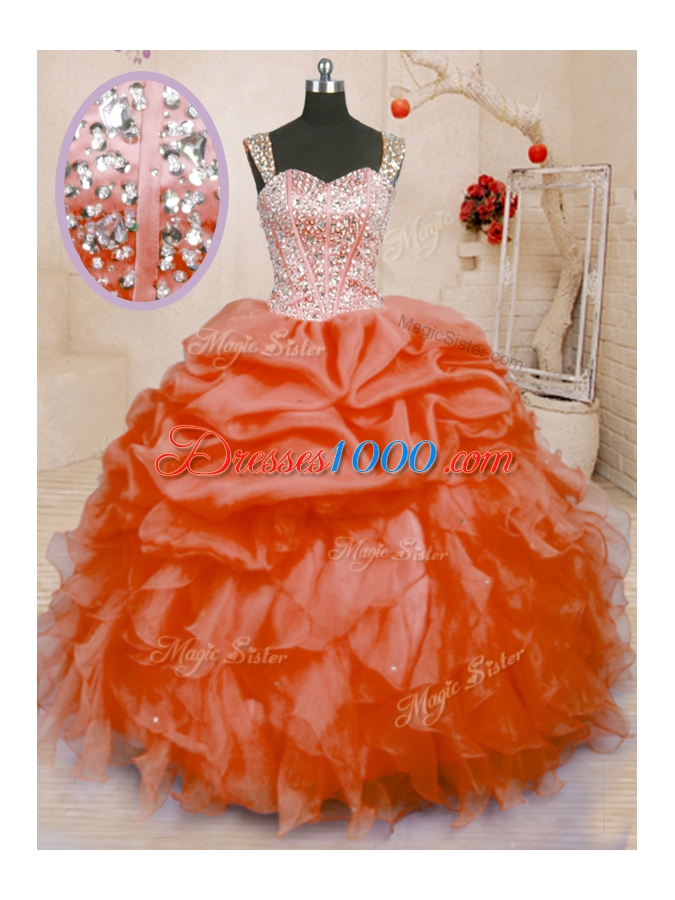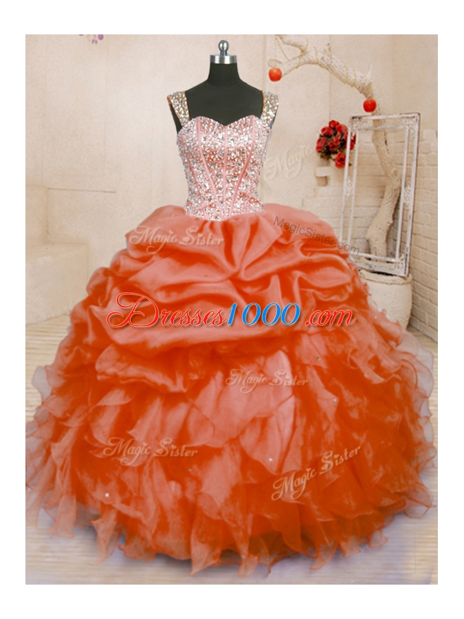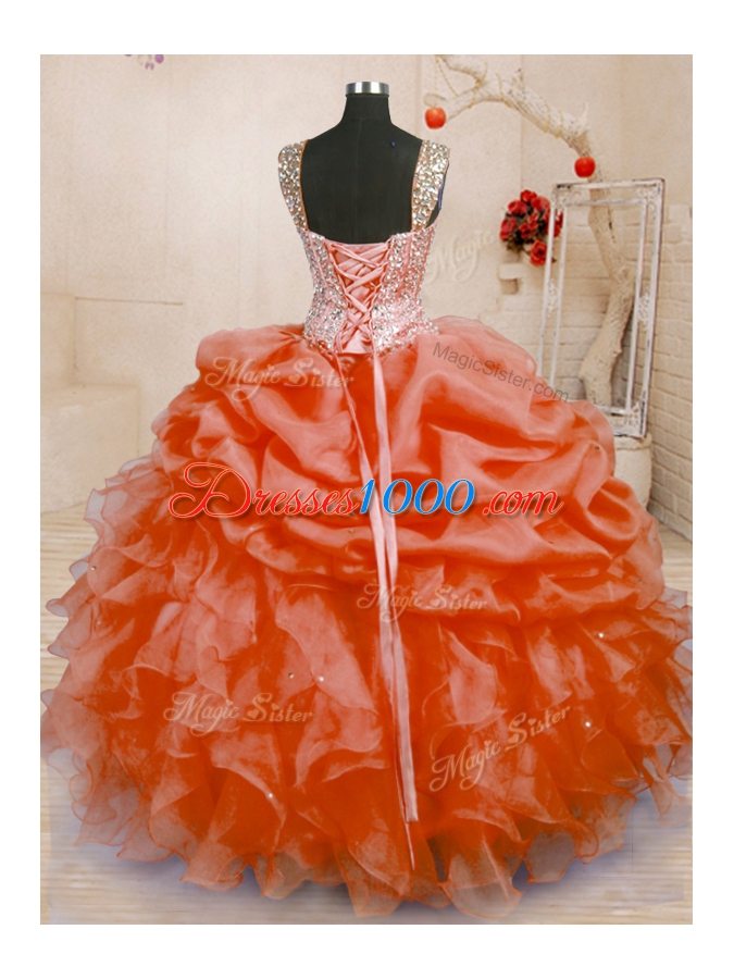 Cute Pick Ups Orange Red Sleeveless Organza Lace Up Sweet 16 Dress for Military Ball and Sweet 16 and Quinceanera