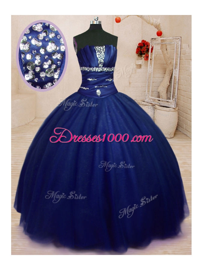 Royal Blue Quinceanera Dresses Military Ball and Sweet 16 and Quinceanera and For with Beading Strapless Sleeveless Lace Up