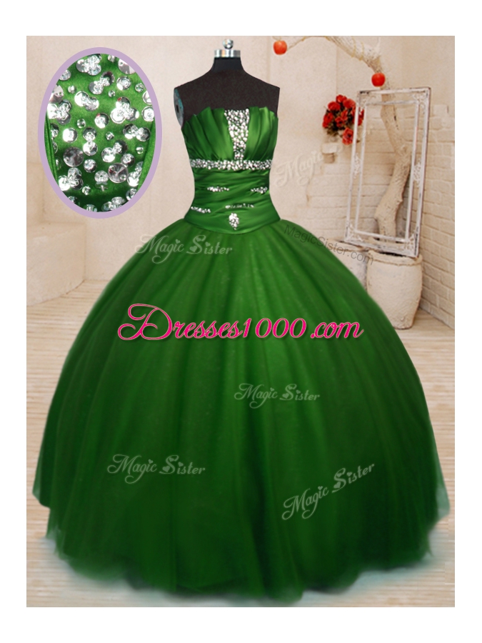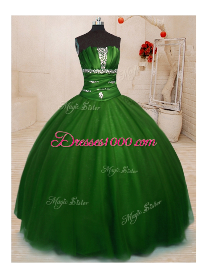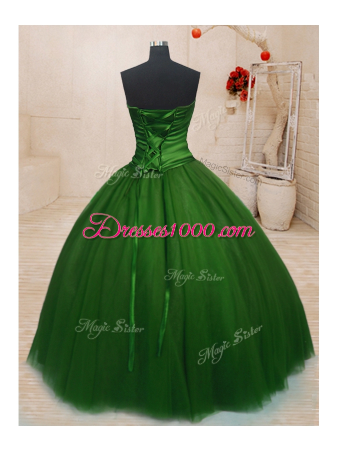 Beautiful Strapless Sleeveless Lace Up Sweet 16 Dresses Green Tulle