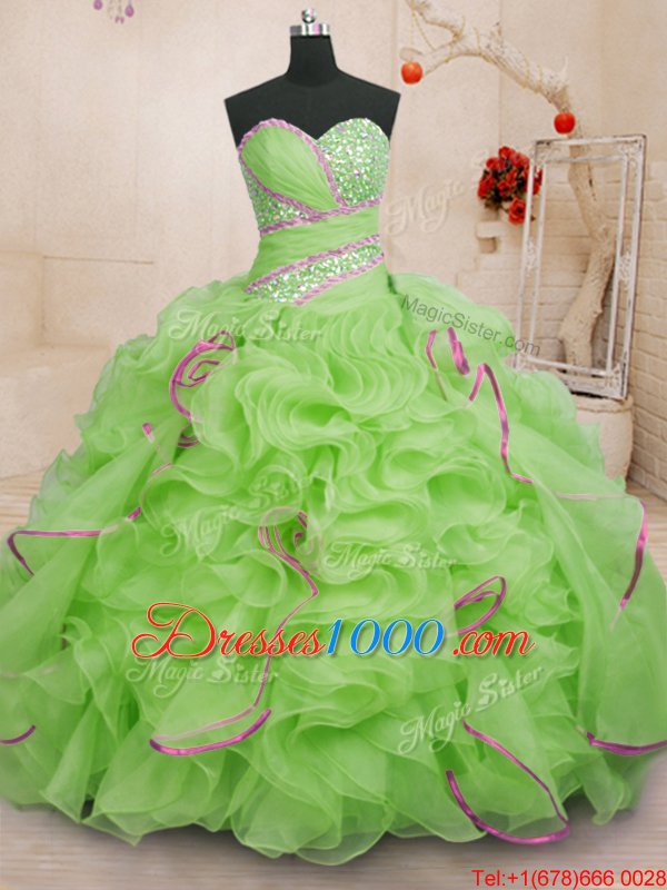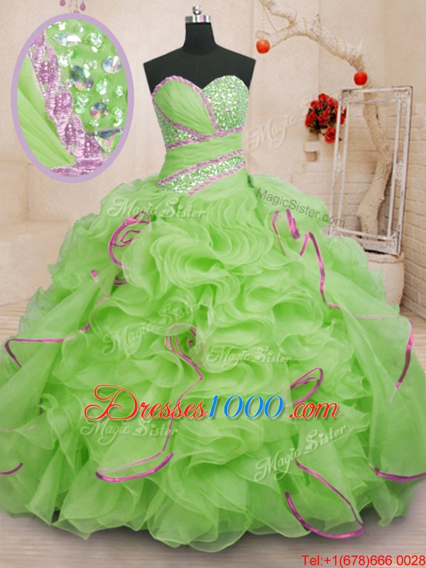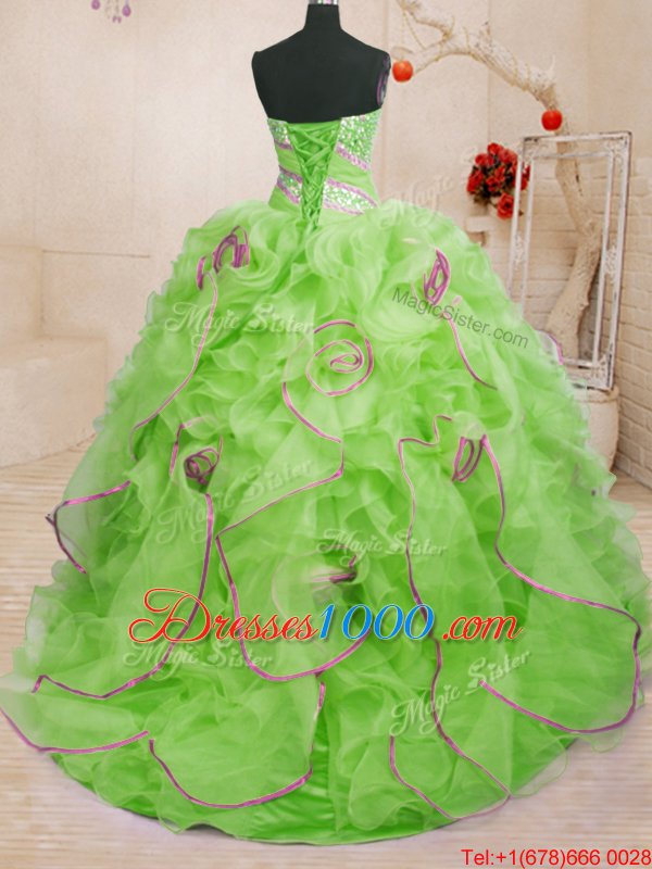 Stylish Organza Sweetheart Sleeveless Brush Train Lace Up Beading and Ruffles Quinceanera Dresses in
