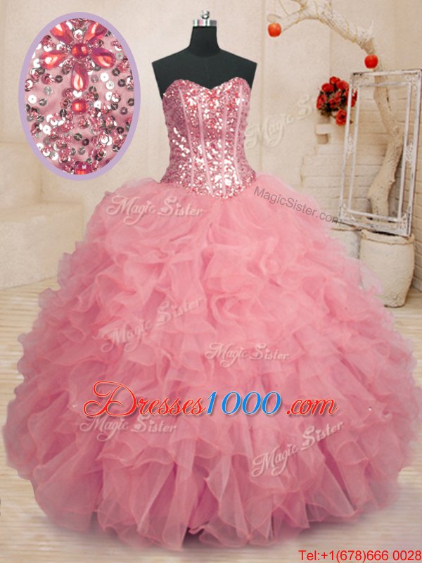 High Class Organza Sleeveless Floor Length 15 Quinceanera Dress and Beading and Ruffles