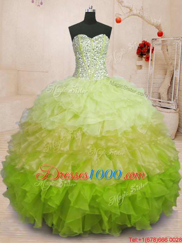 Top Selling Floor Length Multi-color Ball Gown Prom Dress Organza Sleeveless Beading and Ruffles