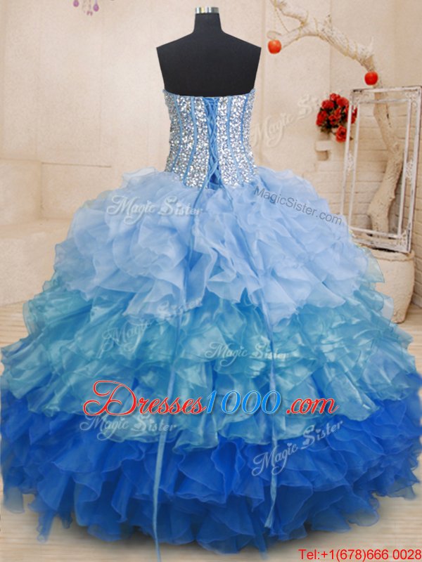 Best Organza Sleeveless Floor Length Ball Gown Prom Dress and Beading and Ruffles