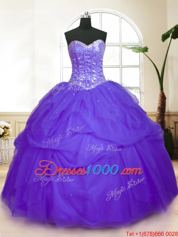 Dazzling Sequins Pick Ups Floor Length Ball Gowns Sleeveless Purple Quinceanera Gown Lace Up