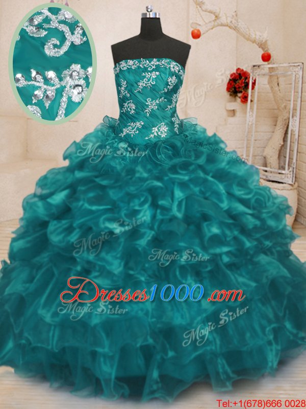 Great Ball Gowns Sweet 16 Quinceanera Dress Turquoise Strapless Organza Sleeveless Floor Length Lace Up