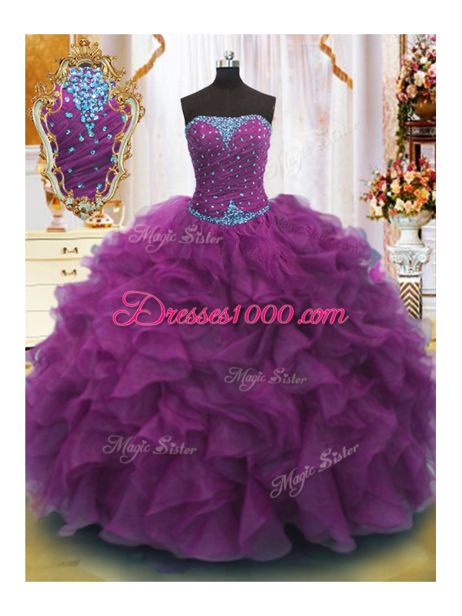 Fantastic Organza Sleeveless Floor Length Vestidos de Quinceanera and Beading and Ruffles