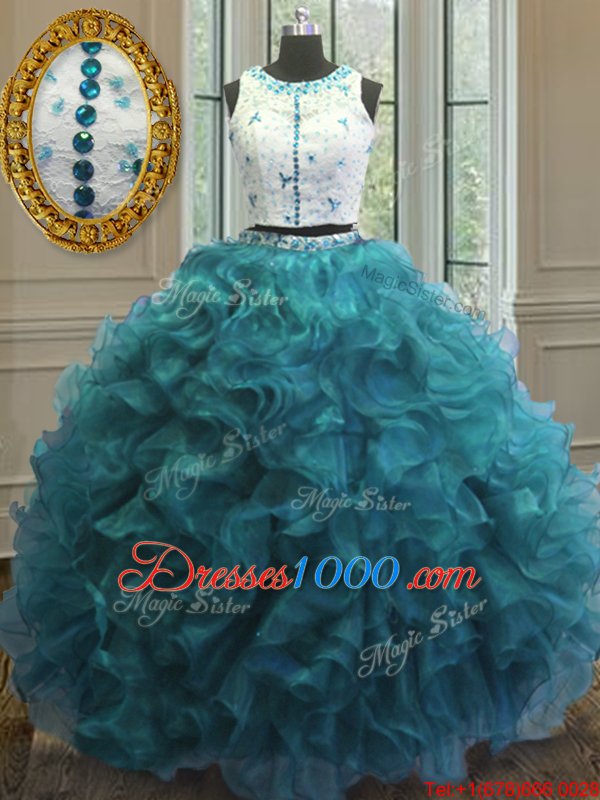 Admirable Scoop Clasp Handle Teal Sleeveless Beading and Ruffles Floor Length Quinceanera Dresses