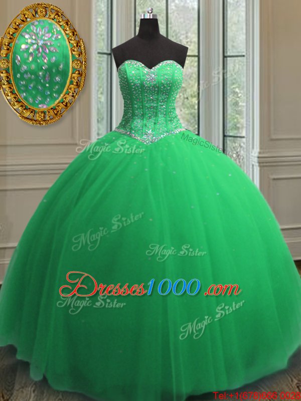 Sleeveless Floor Length Beading and Sequins Lace Up Vestidos de Quinceanera with
