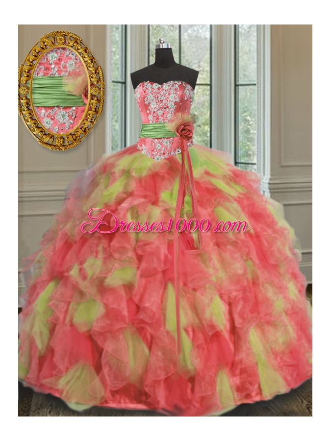 Sweetheart Sleeveless Organza 15 Quinceanera Dress Beading and Ruffles and Sashes|ribbons Lace Up