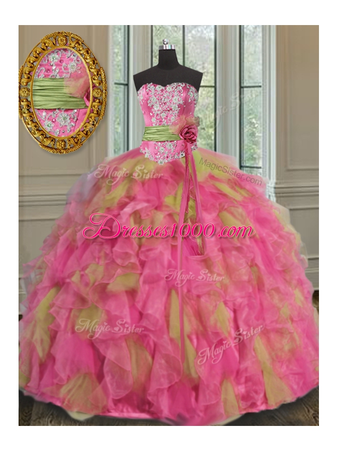 Cheap Sleeveless Organza Floor Length Lace Up Quinceanera Gown in Multi-color for with Beading and Ruffles and Sequins