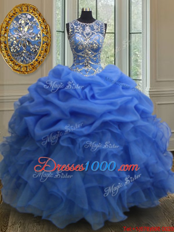 Elegant Ball Gowns Scoop Sleeveless Organza Floor Length Lace Up Beading and Ruffles and Pick Ups Sweet 16 Dress
