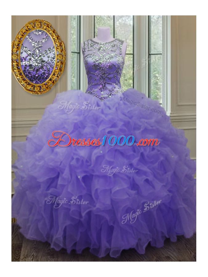 Sophisticated Scoop Sleeveless Organza Quinceanera Dress Beading and Ruffles Lace Up
