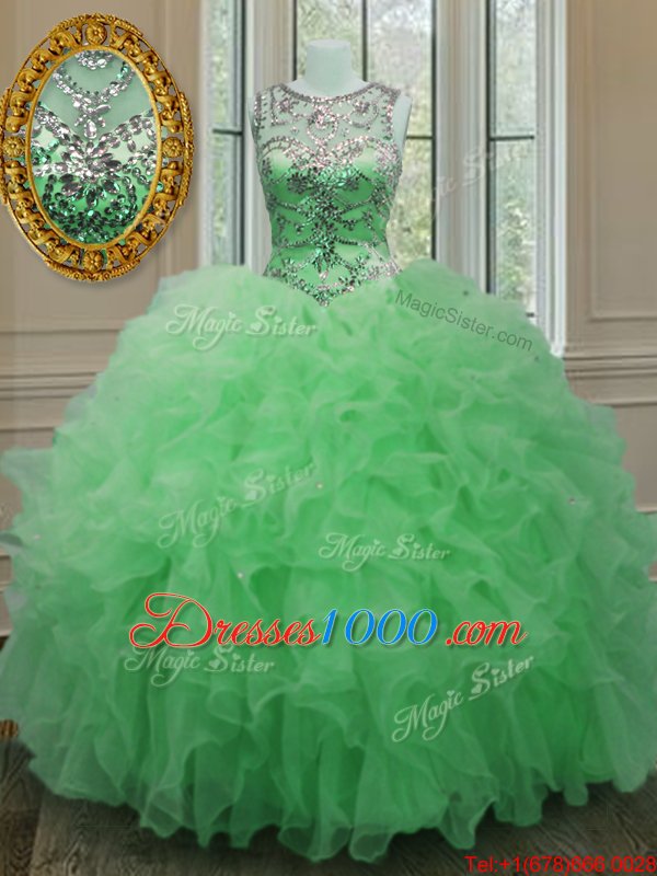Scoop Organza Sleeveless Floor Length Quince Ball Gowns and Beading and Ruffles