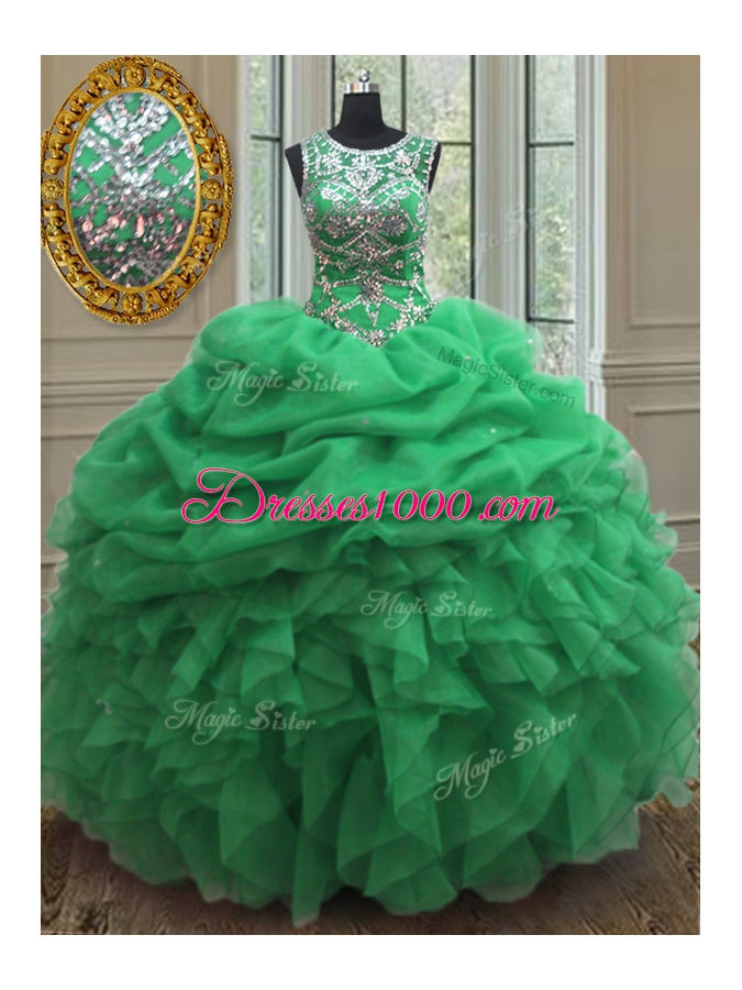 Scoop Fuchsia Sleeveless Beading and Ruffles Floor Length 15th Birthday Dress