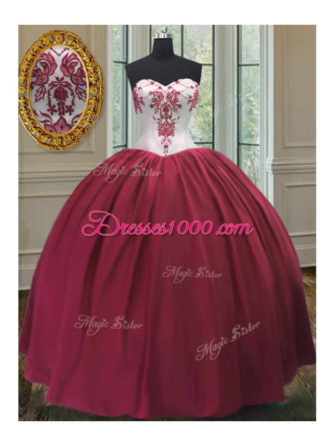Fashion Burgundy Sweetheart Lace Up Embroidery Vestidos de Quinceanera Sleeveless