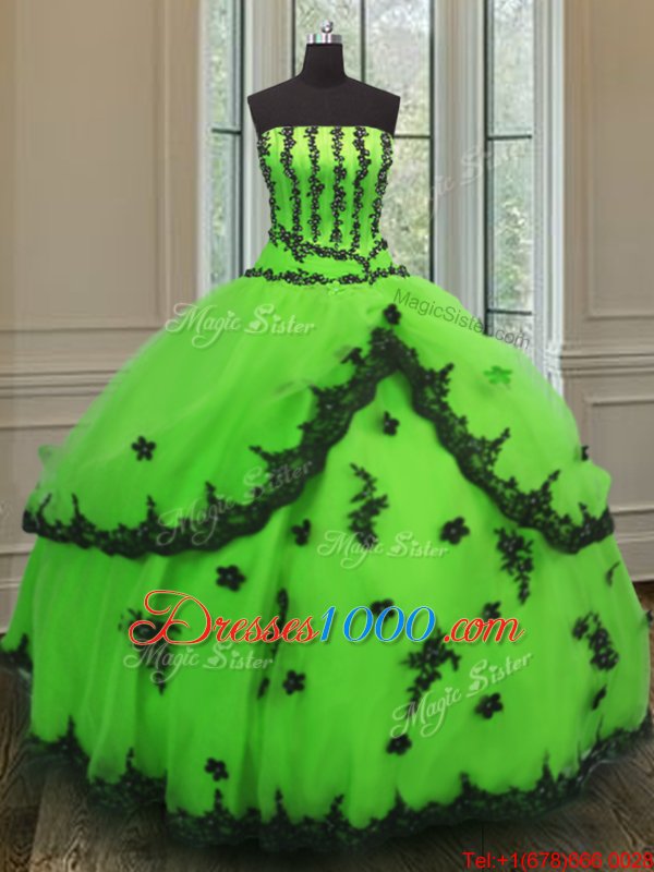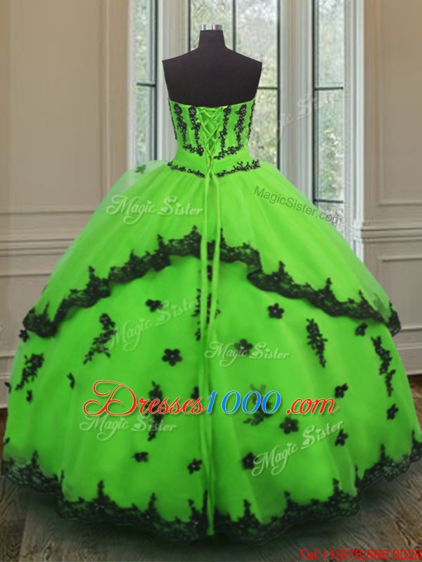 Fashionable Ball Gowns Strapless Sleeveless Organza Floor Length Lace Up Appliques Sweet 16 Dress